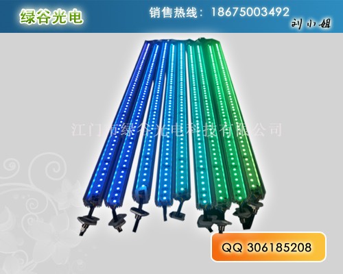大功率LED洗墙灯是一种以大功率LED为光源,由红、绿、蓝组成混合颜色变化的投射照明灯具,可产生256灰度变化,智能控制器达到同步效果,并可接入DMX控台。用户可自己输入资料进行编程控制。该洗墙灯采用数码管地址,同时该洗墙灯内置固定程序,可实现同步、自联功能。该洗墙灯密封可靠,可调节投光角度、位置,使之处于最佳位置,达到最满意的照明效果。(缔造绿色低碳生活,选用绿谷LED灯饰)