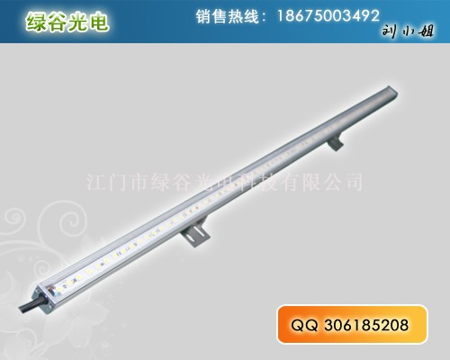 大功率LED洗墙灯是一种以大功率LED为光源,由红、绿、蓝组成混合颜色变化的投射照明灯具,可产生256灰度变化,智能控制器达到同步效果,并可接入DMX控台。用户可自己输入资料进行编程控制。该洗墙灯采用数码管地址,同时该洗墙灯内置固定程序,可实现同步、自联功能。该洗墙灯密封可靠,可调节投光角度、位置,使之处于最佳位置,达到最满意的照明效果。(缔造绿色低碳生活,选用绿谷LED灯饰)