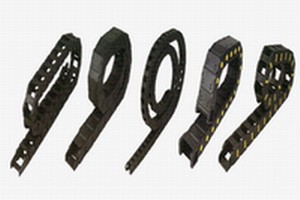 工程拖链;材质为塑料,长度以米计算,一般应用在机床机械等的电缆、油管、气管、 水管、风管上,起牵引和保护作用。