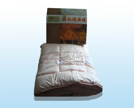 内胆:采用100%纯新澳大利亚绵羊细绒,采用意大利技术,经过漂洗、脱脂、消毒、烘干等工序精制而成。天然的动物蛋白纤维,品质纯正,弹性好、拒霉防蛀,不容易板结。具有非常优异的导湿透气性,保暖性是普通羊毛的1.2 倍,可常保舒适;因此此款羊毛被因为其材质的关系所以要比其他被子昂贵。除了重量轻、体积小、保暖好等等的好处外,还有一个很重要的优点,它不会引起过敏反应,有些老人或哮喘患者对羽绒被或纤维较细小的棉被会产生过敏反应,羊毛被就不会对他们产生副作用。