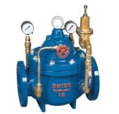 苏州卡尔斯阀门有限公司 200X减压阀,是一种利用介质自身能量调节与控制管路压力的职能型阀门。200X减压阀用于生活给水、消防 给水及其他工业给水系统,通过调节减压导阀,即可调节主阀的出口压力。出口压力不因进口压力、进口流量的 变化而变化,安全可靠地将出口压力维持在设定值上,并可根据需要调节设定值以达到减压目的。该阀减压精确, 性能稳定、安全可靠、安装方便,使用寿命长,一般需水平安装。 结构特点和用途 200X减压稳压阀由主阀、导阀、针阀、球阀、微型过滤器和压力表组成水力控制接管系统。使用时,当调定出口压力后,能自动保持稳定出口压力。 本产品利用导阀自力控制,不需要其它装置和能源,保养简便,压力控制准确度高,受进口压力和流量影响小,减压稳压可靠。 本系列阀门产品广泛用于高层建筑、生活区等供水管网系统及城市供水工程。 工作原理 当阀门从进口端给水时,水流过针阀进入主阀控制室,出口压力通过导管作用到导阀上。当出口压力高于导阀弹簧设定值时,导阀关闭。控制室停止排水,此时主阀控制室内压力升高并关闭主阀,出口压力不再升高。 当阀门出口压力降到导阀弹簧设定压力时,导阀开启,控制室向下游排水。由于导阀系统排水量大于针阀的进水量,主阀控制室压力下降。进口压力使主阀开启。在稳定状态下,控制室进水、排水相同,主阀开度不变,出口压力稳定。 调节导阀弹簧即可设定出口压力。
