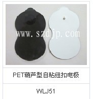 PET自粘式电极片产品尺寸大小分别为(圆有形直径25mm,32mm ,60mm,75mm,80mm方型规格分别如下 .15mm*20mm  40mm*40mm   40mm*60mm  60mm*90mm 蝴蝶型电极片  脸部电极贴片 美容电极片 等等。PET自粘电极片可配带纽扣和尾巴线 配合治疗仪使用更佳。