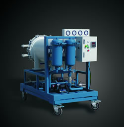 液压润滑系统中水的存在会引起油液氧化,使油液变质,减小油膜厚度,降低润滑性,引起油液变性聚合而形成大分子,使油液粘度改变,形成有机酸,进而腐蚀金属表面,降低或丧失油液的介电强度。对于传统的过滤与分离设备,从相互混杂在一起的一种液体中分离出另一种液体尤为困难,我公司研制的聚结分离式滤油机集精密过滤和高校脱水为一体,可有效清除油液中的颗粒杂质和乳化水,游离水,而不损害元产品的品质。对于含大量水分的油液,其分离效果尤为显著,分离速度是传统速度的几倍到几十倍。