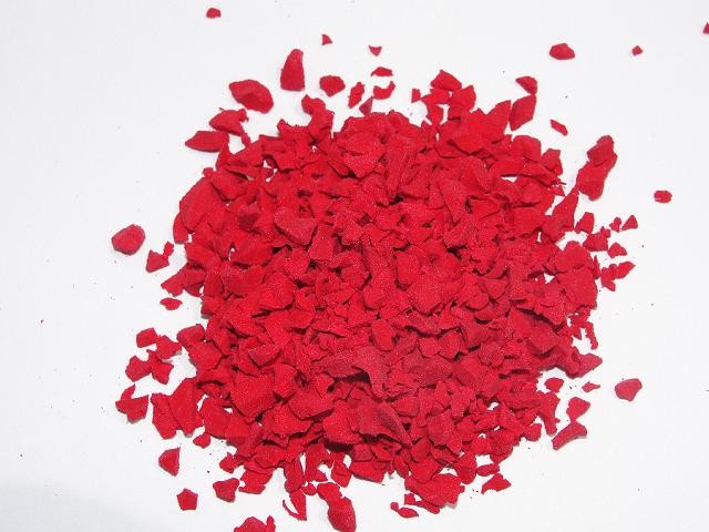 提供各种颜色、型号EPDM颗粒(采用过氧化物硫化)及硫磺硫化产品符合国家标准(GB/T14833—1993),年产量2万吨。 粒径不同规格的EPDM彩色颗粒。主要用于铺设体育运动的径赛跑道和田径跑道及网球场、篮球场、体操房等各类运动场地,也可用于休闲广场、老年公寓、青少年活动中心、幼儿园、豪华办公室、家庭院阁等特殊环境铺装。用不同规格的EPDM彩色胶粒做面层,黑色废旧混合胶板做垫层,用聚氨酯粘结铺设。