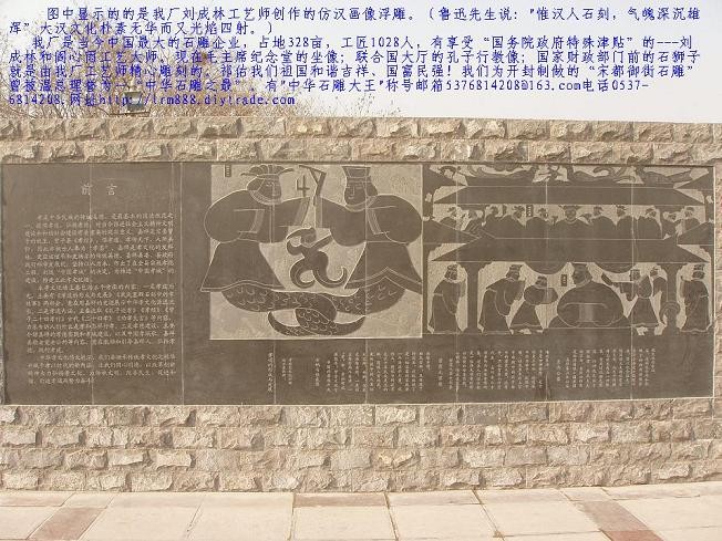 1,我厂是当今中国最大的石雕企业,占地328亩,工匠1028人,有享受“国务院政府特殊津贴”的-----刘成林和阎心雨工艺大师。
