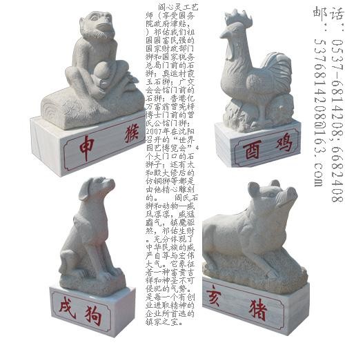属相石雕,嘉祥石雕12生肖柱,十二生肖石雕生肖动物石雕城市雕塑