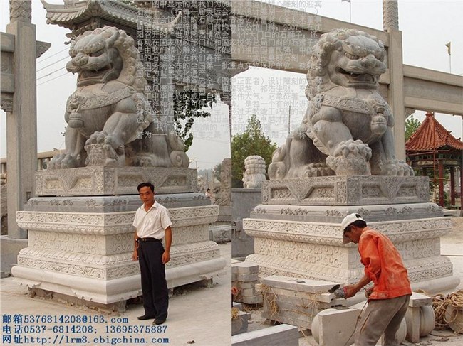 3,阎心雨工艺师(享受国务院政府津贴)。像祁佑我们祖国国富民强的国家财政部门狮和国家税务总局门前的石狮;奥运村霞玉石狮(按每一届奥运会对应设计雕刻一种造型。);广交会会馆门前的石狮;香港亿万富翁曾宪梓博士门前的曾氏公馆门狮;2007年在沈阳召开的“世界园艺博览会”4个大门口的石狮子;中国电信门狮。还有太和殿大修后的仿铜狮等都是由他精心雕刻的。