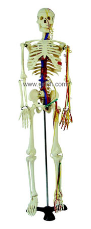 这款模型适用于中专、医学院校等在讲解人体解剖关于动脉和神经分布时作为直观教具。使学生了解人体全身主要血管和神经的行程及其分布概况。可水洗,不破碎,PVC制成,铁质座可塑料座。尺寸:85CM
