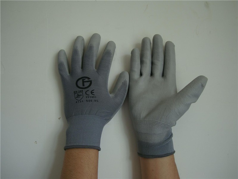 供应13针灰色尼龙内胆掌浸灰色PU手套
