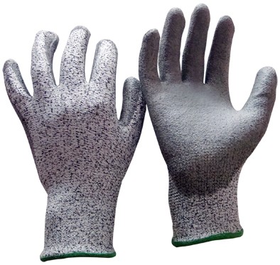 供应13针麻灰DYNEEMA掌浸灰色PU防割手套
