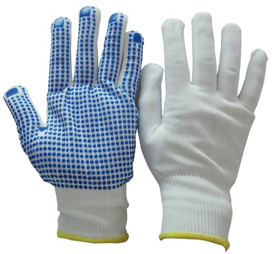 描述: 13针漂白尼龙内胆, 单面手掌PVC点珠