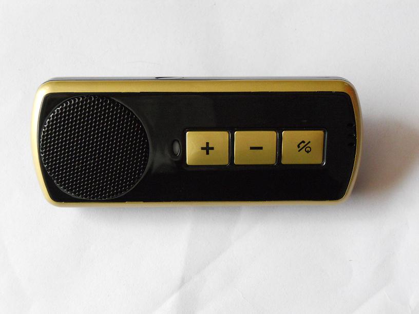蓝牙无线传输,,采用CSR主控,DSP回音处理,车内车外都可用,带有外响喇叭集成回声消除内置喇叭和麦克风 蓝牙规格:Version2.0 支持蓝牙Profile:蓝牙立体声耳机和免提支持A2DP发射功率为:Class 2 无线连接范围:10米操作频率范围:2.402-2.480GHz 电压输入规:DC 5-6V 300-400mA 内置可充电锂电池:3.7V 800 mA正常充电时间:8-10小时待机时间:200小时通话时间:12-14小时