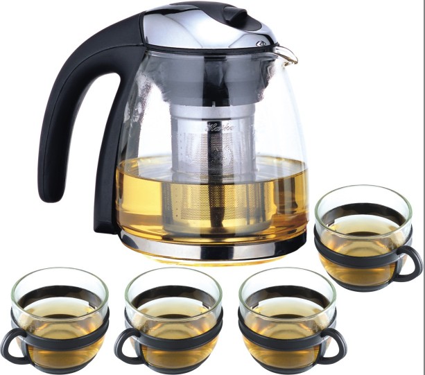 本产品采用最新欧洲外观设计卡通造型线条流畅造型气静祥和珠圆玉润尽显欧风情。 *质材高档壶体采用上等高纯度高白料石英玻璃可容纳1000ML 壶体内置不锈钢滤网过滤茶中杂质使茶汤更醇冲茶时轻雾缥缈美感十足透过壶体茶汤澄清碧透色泽鲜艳。 *有五件套供用户选择。