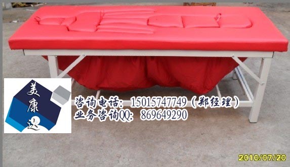 【香薰床/熏蒸床/蒸汽养生床规格工艺】:中药熏蒸床主要由优质皮革、海绵、钢架构造而成,由六条钢管支撑,床底面是由钢条和木板编织构成(市面上有很多熏蒸床是用单纯的木板做床面,木板遇蒸汽容易腐烂,造成床面的塌陷)。