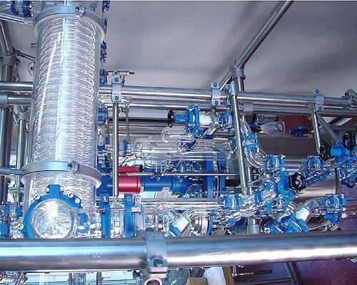 随着我国化学工业,特别是有机合成与高分子化学工业的飞速发展,对化工设备防腐技术的要求日趋迫切。优质合金钢材,不仅造价昂贵,且只能抵抗有限种类介质的腐蚀。近年来,一些非金属防腐材料,如塑料,玻璃钢,玻璃,陶瓷和不透性石墨等,在化学生产中得到的广泛的应用,取得了显着的效果。高硼硅玻璃就是一种,它具有良好的化学稳定性,机械强度大,由于工艺水平的不断提高,逐渐从实验室仪器的生产发展到化工设备的制造,在解决广范围介质的腐蚀上已具成效。我司生产的硼硅玻璃管道仪器,作为一种非金属材料,已在化学试剂,染料,医药化工等行业被选用。 玻璃冷凝器又称玻璃冷却器,玻璃换热器,玻璃热交换器,被广泛地应用在化工工艺的冷却,回流化工生产中。