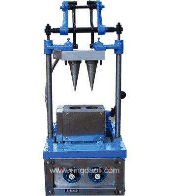 本公司研制的蛋筒机设计人性化,操作简单,本机分为上模和下模,用时通过温控旋钮,将温度先调起来,等温度升上来后,上模拉上去,下模合拢,倒入桨料,然后将上模压下与下模合拢,约过一至两分钟后,蛋筒即可成型,此时将上模拉上去,下模拉开,蛋筒将自动落入下面的通道内并滑出。