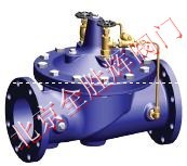当阀门从进口端给水时,水通过微型过滤器、针阀、单向阀进入主阀控制室,再经过球阀排水至下游。因为针阀开度小于球阀开度,即主阀控制室的排水速度大于进水速度,因此控制室压力降低,作用于主阀盘下端的进口压力打开主阀向下游供水。