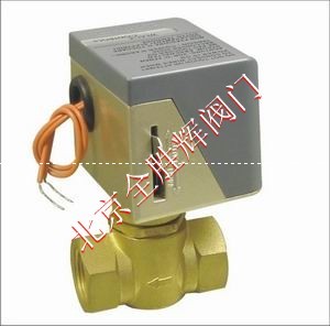 VT8088系列电动二通阀由VT8088系列阀门驱动器和VT8088系列铜阀组成。用于控制冷水或热水空调系统管道的开启或关闭,达到控制室温之目的。驱动器由单向磁滞同步电机驱动,阀门弹簧复位。阀门不工作时处于常闭状态,当需要工作时,由温控器提供一个开启信号,使电动阀接通交流电源而动作,开启阀门,冷冻水或热水进入风机盘管,为房间提供冷气或暖气;当室温达到温控器设定值时,温控器令电动阀断电,复位弹簧使阀门关闭,从而截断进入风机盘管的水流。通过阀门关闭或开启,使室温始终保持在温控器设定的温度范围内。