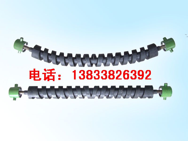 双向螺旋橡胶托辊我厂生产的双向螺旋橡胶托辊是引进国外先进技术,针对化工行业固体粘湿物料输送时存在严重问题开发研制的科技成果.我厂专业从事皮带机双向螺旋橡胶托辊的制造和销售,该产品在国内享有千家的用户,还远销东南亚各国。该产品的问世,从根本上解决了带式输送机普遍存在的腐蚀,粘辊、胶带跑偏和撕裂等严重问题。具有结构新颖、安装维修方便、自定中心输送平稳、不粘辊、噪音小,能耗低及延长胶带使用寿命特点。填补了国内空白,并被多家部属化工设计院纳入通用设计规范。
