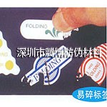 易碎标签是以易碎印刷材料为面料,背面涂有特种强力胶粘剂,其面料断裂强度远低于胶粘剂粘合能力;当易碎标签被贴上基材后再揭起时,材料无规则断裂,显示产品包装已被拆开过,且无法复原。