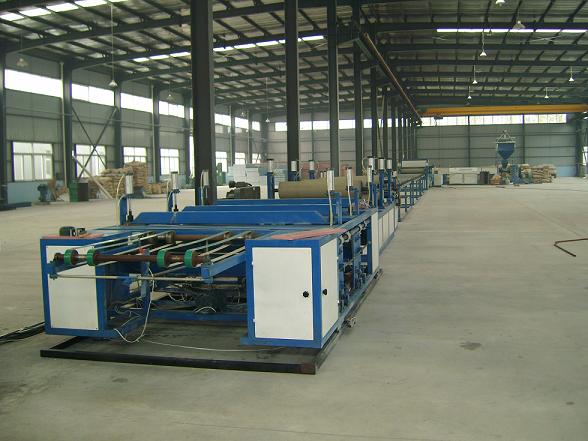 挤塑板设备,是以聚苯乙烯为原料,注入发泡剂;结合水、电、气的有效控制;通过挤、压、拉;制造出具有闭孔结构、质轻、高抗压的硬质挤塑板。整套设备从搅拌加料装置至成型机,以及配电箱、回收机等仅需50X12米厂房,工人约16名,日产量可达200立方米左右,板材成本350-380元/立方之间,出厂价380-420元/立方之间,市场价450-550元/立方之间(以2007年8月份的市场情况得出的数据),切割的边料可再用,当年即可收回投资。