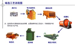 ??菱铁矿选矿设备,开采的矿石先由颚式破碎机进行初步破碎,在破碎至合理细度后经由提升机、给矿机均匀送入球磨机,由球磨机对矿石进行粉碎、研磨。经过球磨机研磨的矿石细料进入下一道工序:分级。螺旋分级机借助固体颗粒的比重不同而在液体中沉淀的速度不同的原理,对矿石混合物进行洗净、分级。经过洗净和分级的矿物混合料在经过磁选机时,由于各种矿物的比磁化系数不同,经由磁力和机械力将混合料中的磁性物质分离开来。经过磁选机初步分离后的矿物颗粒在被送入浮选机,根据不同的矿物特性加入不同的药物,使得所要的矿物质与其他物质分离开。在所要的矿物质被分离出来后,因其含有大量水分,须经浓缩机的初步浓缩,再经烘干机烘干,即可得到干燥的矿物质。