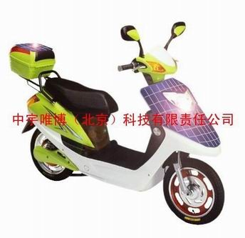 中宇唯博(北京)科技有限责任公司生产的电动车太阳能充电器:本产品采用单晶硅、多晶硅相结合,表面为多菱采光板体,优质高效晶硅板,对弱光响应特性非常好,光电转换率高,无论室内外阳光强弱,可以不间断的吸收光线为电动车自行充电,能够满足电动车的用电负载。产品体积小,重量轻,便于安装携带。市场潜力非常大,前景非常广阔 。