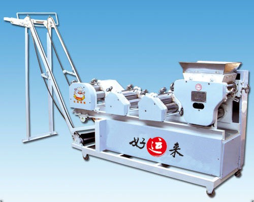 该机轧辊分钢辊和铸伯辊两种,轧辊表面经过磨床精磨,光滑美观,轧出的面条均匀带光洁,保证了良好的挂面质量。轧辊采用倾斜45度或60度排列,且开当大、固定牢、便于操作、安全卫生,宜于眼观。传动采用减速机和链条传动,整机布局得当、压延比、分配合理,传动平稳,传达室动动力准确高效,还有噪音小、无震动、性能优越等特点,可配套小型烘干设备,是中小型挂面生产企业的理想产品。