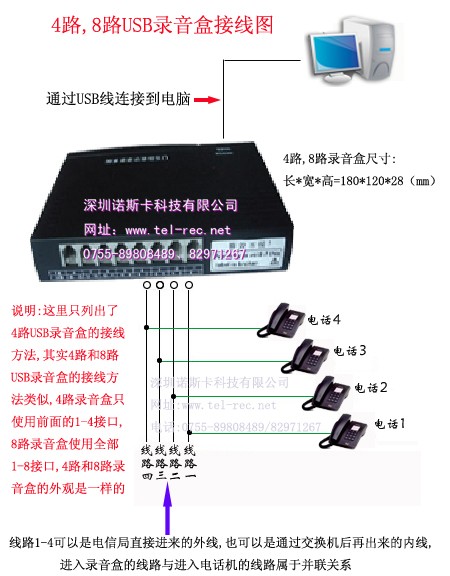 8路电话录音盒电话录音设备电话录音盒 USB电话录音盒8路电话录音盒电话录音系统