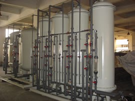 去离子水设备工艺第一种:采用阳阴离子交换树脂制取的去离子水,一般处理之后,出水电导率可降到10us/cm以下,再经过混床就可以达到1us/cm以下了。这种方法做出来的水成本比较高,而且颗粒杂质太多,达不到理想的要求,目前已较少采用了。