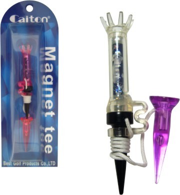复位磁性球tee 1.磁性tee在击球时上.下两部分可以分开!具有击球阻力很小的特点! 2.磁性tee上.下两部分采用Magnet连接!具有灵活可分开.可连接的特点! 3.磁性tee上半部具有一定空间可以印不同颜色.规格图案和logo的空间! 4.产品采用具有耐冲击/耐破裂的材料制成!具有使用寿命长的特点!