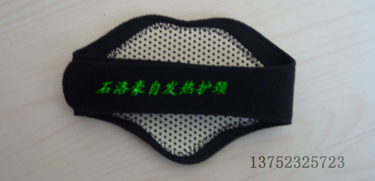 功能特点; 洛达康自发热护颈通过成熟的托玛琳(电气石)超细技术,对其紫砂、磁粉、镁、铁、锗、包埋剂、热感环保树脂等材料进行了复合改性。制成一种特殊穴位反应贴灸片。洛达康自发热护颈集特异性调节与同一性调节为一体,通过激活人体皮肤穴位细胞的VR1基因受体,合成共振效果,产生穴经效应。 作用与功效: 1、锗材料最外侧的轨道有4个电子不规则运动,能在32℃释放自由电子并释放负离子,正负电离子发生交互作用时产生电流,由含锗的穴位反应贴灸片作用人体,经由皮层渗透,中和患部的正离子,缓和酸痛。 2、洛达康自发热护颈利用人体自身能量及水分,循环启动含有热感环保树脂的多孔紫砂自热释放系统(穴位反应贴灸片)可连续释放热能,自发热护颈贴身使用10分钟热疗效应明显,充分体现电针作用,改善人体微循环,加速新陈代谢,快速消除疲劳。 3、托玛琳(电气石)具有远红外-负离子双重作用,在自身能量及合振能量作用下,使远红外渗透到皮肤深处(大约3-8㎜),当人体热量感应到功能层时,层内原子分子等粒子就会发生不规则运动,压电与热电效应更加强烈,使能量护颈温度进一步升高。 4、经多项技术处理的自发热穴位反应贴灸片,集热学、光学、医学、血流学、纺织工程学为一体,具有优良的吸收和发射功能,该产品无需人体外任何能量(电池、电源电),有效畜能时间在5000小时以上。 5、由于生物磁性材料的磁力线作用,洛达康自发热护颈使颈部周围形成磁场(无电磁波幅射),透过生物磁波不断的扩散及刺激,可对人体肌肤进行微按摩,如同中医针灸对穴位进行针刺刺激一样,是一种无痛多方位的理疗方法,从而达到放松肌肉的作用。 [贴牌加工,OEM生产]