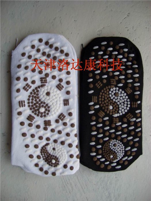 涂点袜子,洛达康涂点袜子是由磁性纤维和远红外丝弹性纤维组成。它具有抗菌、软化皮肤的疗效;能够促进脚步血液循环,并且涂点袜子能缓解脚步疲劳和脚部麻木。起到了抗菌、消炎的效果,并能预防脚臭。脚发射的磁力线和远红外线有很好的微热效果,洛达康涂点袜子对由脚寒引起的小腿抽筋、冻疮等有辅助作用。可贴牌加工、OEM生产