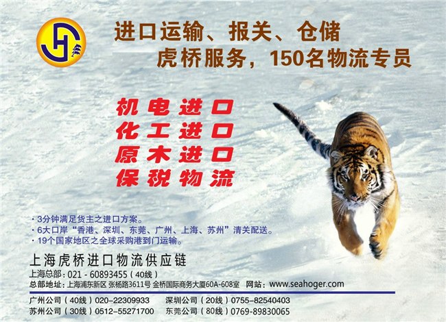 虎桥苏州公司、虎桥东莞公司,两个进口方案中心共150名服务专员。基于虎桥进口物流一直的行业服务,无论是民营采购、中间商人采购、独资企业采购,虎桥都有丰富的案例。同时,扎根沿海一线进口口岸,虎桥服务队伍对“机电、原木家具、化工、耗材”4大类产品800多种商品的熟识,故服务队伍能够在3分钟完整标准进口物流方案。虎桥“3分钟满足方案精神”,成为一种标志,它是虎桥服务队伍的鞭策,也是一份职业的骄傲。