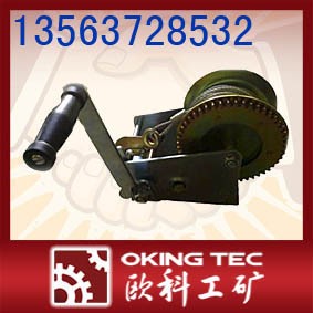 手摇绞车,是一种机械用具,它是通过用手摇动绞车卷筒来拉动货物的。由齿轮驱动的绞车钢丝绳卷筒通过转动绕在它上面的钢丝绳来拉动货物。它带有自动刹车装置,这使操作时更安全。