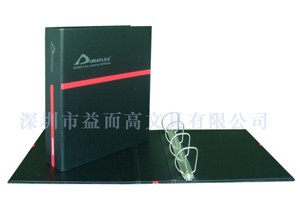 文件夹封面采用157克铜板四色印刷过哑膜,包1500克灰板,里纸为128克铜板纸印刷黑色过哑膜,钉4孔D型铁夹,功能:用于企业内部办公文件的存档及管理.