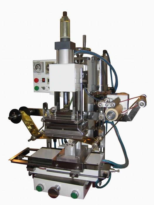 气动平曲面烫金机:非常适合瓶盖,眉笔,口红,圆珠笔等小直径等产品的曲面烫金和小面积如随身镜,变签纸,小工艺品等产品的平面烫金。