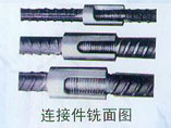 钢筋连接件是一种用于使第一和第二钢筋彼此连接的钢筋连接件,第一和第二钢筋各自包含许多的纬向肋和经向肋,所述钢筋连接件包括: 一个在其一面上轴向敞开的柱形套筒,该套筒包括: 一对第一固定槽,该固定槽轴向并排地配置在套筒中,如此,第一和第二钢筋的端部被装于第一固定槽中并排安置,第一固定槽各自具有半圆形的截面,并且槽深约相当于第一和第二钢筋各自直径的一半,许多第一肋座配置在第一固定槽各自的预定部分,以使第一和第二钢筋各自的纬向肋安置于其中; 一个盖形件,用于盖住装入套筒的第一固定槽中的第一和第二钢筋,该盖形件在其预定表面上具有一对第二固定槽,该第二固定槽并排安置以与第一固定槽相对应,许多第二肋座配置在第二固定槽各自的预定部分,以使第一和第二钢筋各自的纬向肋安置于其中;以及 一个楔子,从套筒的一端轴向插入套筒中,用于楔住套筒中的盖形件及第一和第二钢筋。