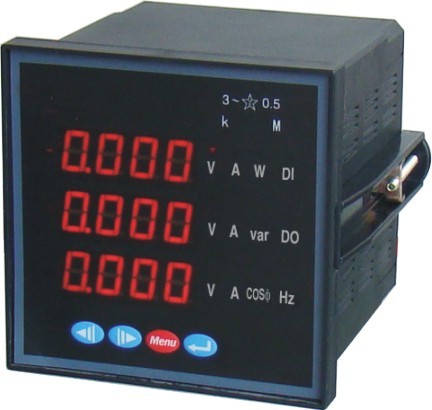 测量三相电压、三相电流、有功功率、无功功率、功率因数、频率、有功、无功电能,通过切换方式和3排4位LED以及指示灯显示。可选配开关量模块:开关状态输入监视和遥信,可编程报警开关输出或遥控开关输出。可选配模拟量模块:可编程设置4~20mA输出,实现传统变送器功能。