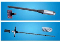 随着国内大部分矿井开采深度的不断增加,巷道支护难度越来越大,特济南澳科矿山技术公司专门引进澳大利亚先进矿井支护技术,研发生产了螺旋肋钢丝新型树脂端锚螺纹锁紧中空注浆强力锚索其主要特点1.锚索的安装、预紧方式与树脂锚杆完全相同(螺纹紧固),取消了张拉工序,不但能实现搅拌、张紧一体化快速安装,而且使锚索与锚杆能同步承载,形成整体支护作用;2.索体及锁紧结构采用新型结构,在保证注浆通径的前提下,使索体直径达到最小化,所需安装孔径也小的多,安装效率高,实现了小孔径、大吨位;3.锚索索体为新型中空结构,自带注浆芯管,采用反向注浆方式,不仅消除了产生气穴空洞的可能,也无须在现场绑匝注浆管、排气管以及封堵注浆孔,使施工步骤大为简化4.索体上部为搅拌树脂药卷端锚,下端采用螺纹锁紧,安装后能立即承载,这一点是现有的各种注浆锚索产品均无法作到的,而对于自稳能力差的顶板岩层又是非常有利和必要的;5.采用螺纹锁紧方式,锁紧机构工作可靠,不会打滑,不会产生火花,对井下潮湿、淋水环境的适应性是采用夹片式锚具锁紧方式所无法比拟的;6.采用高强度螺旋肋预应力钢丝制造的锚索的锚固强度比相同直径的用钢绞线截割成的锚索提高15%以上,而锚固延性可提高25%以上。7.由于安装后能立即承载,因此注浆可以安排在迎头后方一定距离将一定范围的锚索一次注完,因此施工非常便利;螺纹锁紧机构具有调心功能,锚索外露长度小且均匀一致,不影响巷道有效高度。采用螺旋肋预应力钢丝制造新型锚索品种规格锚索类型锚索索体结构及所用螺旋肋钢丝参数(mm)锚索直径(mm)破断载荷(吨)锁紧螺纹规格安装孔径(mm)中空注浆强力锚索9根?5周边丝+ ?10注浆芯管?20.633M33×2?288根?6周边丝+ ?10注浆芯管?22.640M36×2?28~?329根?6周边丝+ ?12注浆芯管?24.645M39×2?32~?358根?7周边丝+ ?12注浆芯管?26.954M39×2?32~?359根?7周边丝+ ?14注浆芯管?28.960M42×2?35~?42其主要应用范围是:取代目前的小直径锚索,用于煤巷锚杆支护的