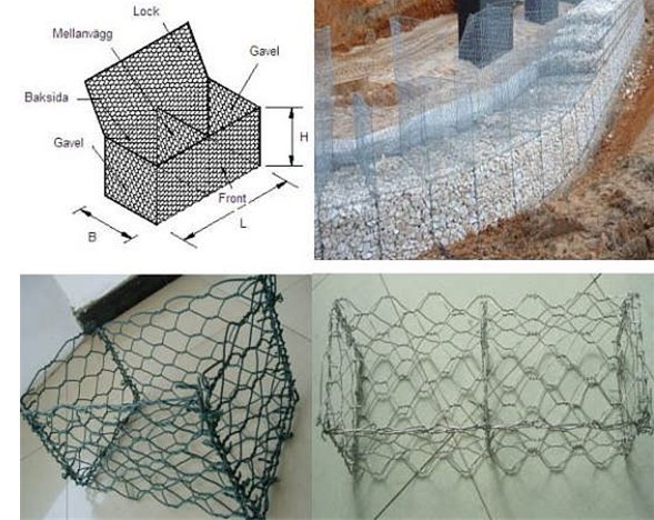 它是一种生态格网结构。宇航石笼网由高抗腐蚀、高强度、具有延展性的低碳钢丝或者包覆PVC的以上钢丝使用机械编织而成,使用该网制作而成的箱型结构就是石笼。根据ASTM和EN标准,所使用的低碳钢丝直径根据工程设计要求而不同。一般介于2.0-4.0mm之间,钢丝的抗拉强度不少于38kg/m2,金属镀层重量一般高于245g/m2石笼网片的边缘线直径一般要大于网线直径。其双线绞合部分的长度不得小于50mm.以保证绞合部分钢丝的金属镀层和PVC镀层不受破坏。