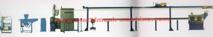 生产线包括可升降式放线机——调直机——包塑机——配电柜——牵线机——收线机数字通信式人机界面计算机控制系统 能全面显示多种参数,多方动态图表显示 操作运行直观简便 4个电机转速:80转/分直径:90mm长径比:25:1最大包塑量:90公斤/时 主电机功率:22千瓦/时牵线机配有3档调速电机,控制包塑速度。