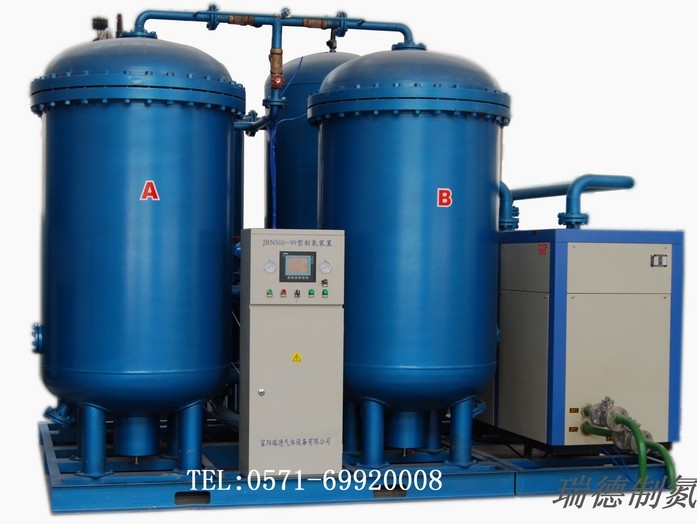 RDN系列制氮机是根据变压吸附原理,采用高品质的碳分子筛作为吸附剂,在一定的压力下,从空气中制取氮气。