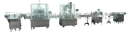 液体灌装生产线是由理瓶、灌装、旋盖、铝箔封口、不干胶等单机组成的瓶装生产线。