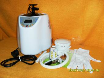 直煮型中药熏蒸机最大的特点:直接蒸煮中药,免去了需要先将中药煎煮成液体繁复过程。本型号设有过压、过流、过热保护装置,定时断电保护。另加电磁兼容线路,在您使用时不会影响到其他电器;加上了防雷击保护线路,在打雷天气忘关总开关也不会烧毁机器. 九级温控调节设计(以功耗 10%为间隔),令您可根据脚部的感受随时将蒸汽量调节到最佳效果;而且配备一个超薄型遥控器,方便易用;带有定时功能,可让机器在您设定的时间内自动机;带有温度感应微电脑自动断电装置,能有效地保护发热管不被烧坏和保证发热管的合理寿命;所有控制功能都有蜂鸣器提示。