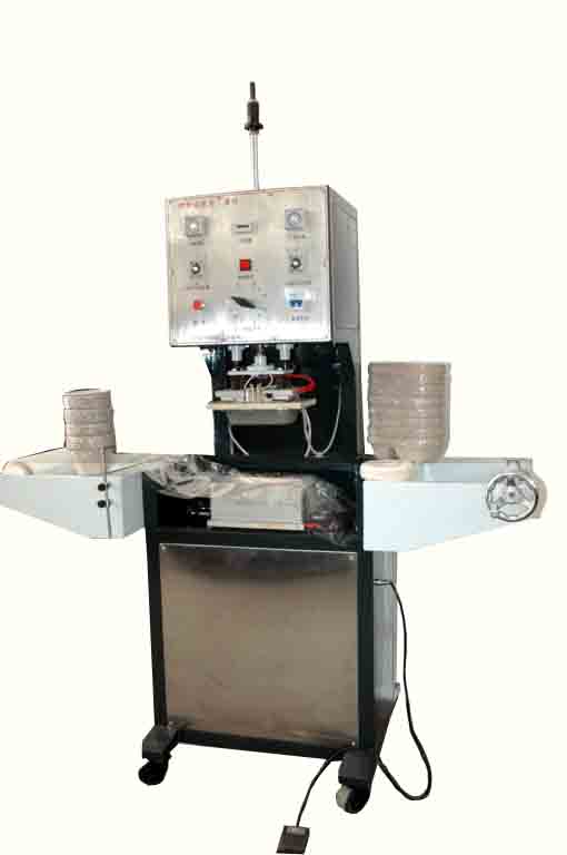 本机用于环保快餐盒的透明薄膜的封切成形包装,经包装后可有防尘,防潮,防腐兼美观的作用。在设备的台板上分别放有包装好的餐盒,可放大图片看观包装效果。本机采用半自动设计。封切﹑卸料全部采用气动式自动完成,封切时间﹑温度控制按模具大小设置后自动控制。本机电源电压220V,最大功率1.8KW。