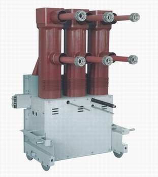 断路器与操动机构采用上下布置结构,有效地降低了断路器的深度。  三相灭弧室和相联带电体由三只独立的环氧树脂绝缘筒相隔离,构成复合绝缘结构,断路器满足正常运行条件下的空气距和爬电距要求,并有效地减小了断路器的体积。主导电回路真空灭弧室和动静导电联接安装在绝缘筒内,使相间距仅为300mm。主回路电气连接全部采用固定式连接,具有很高的可靠性。绝缘筒安装在断路器框架上方。
