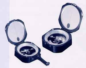 该仪器是利用磁针通过刻度盘读数来确定目标方位的。同时,采用了重垂式测角器配合方向盘上倾角的读数,可以确定目标的各种坡角。