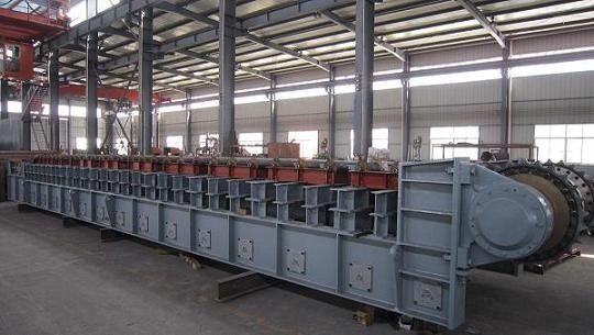 3.WB型重型板式给料机是运输机械的辅助设备——固定式给料机,该在大型选矿厂破碎分级车间及水泥、建材等部门,作为料仓向初级破碎机连续和均匀给料之用,也可用于短距离输送粒度与重较大的物料。可水平安装,也可倾斜安装,最大倾角为12°。为避免物料直接打击到给料机上,要求料仓不出现卸空状态。