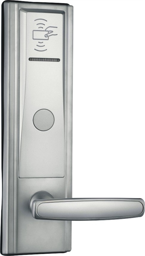 功能特性说明:1.卡片类型:ID、TEMIC、MF1;2.读卡技术:采用电池波感应技术,感应更灵敏,感应距离≤5cm;3.工作电源:直流6V,四节5#碱性电池,可正常使用一年以上;4.程序芯片:电路板主芯片采用低功耗的美国德州仪器TI芯片;5.功耗情况:静态电流:≤15微安(?A)、读卡电流:≤20毫安(mA)、开锁电流 :300毫安(mA)左右(持续0.3秒);6.工作环境:温度:-20℃~+70℃、湿度:≤95% RH;7.欠压指示:电池电压≤4.8V时,开锁时鸣叫三声红灯亮,此时仍可开锁50次以上;8.其它特点:输出保护功能、防水防潮、防干扰处理、抗静电:>15,000V,在强静电干扰下仍可保证 信息不丢失,工作稳定;9. 使用场所:酒店、停车场、小区、办公室门禁等; 10.系统配置:计算机(自备)、发卡软件系统一套、发卡器一台、数据采集器一台、感应卡片若干、感应门锁若干 。